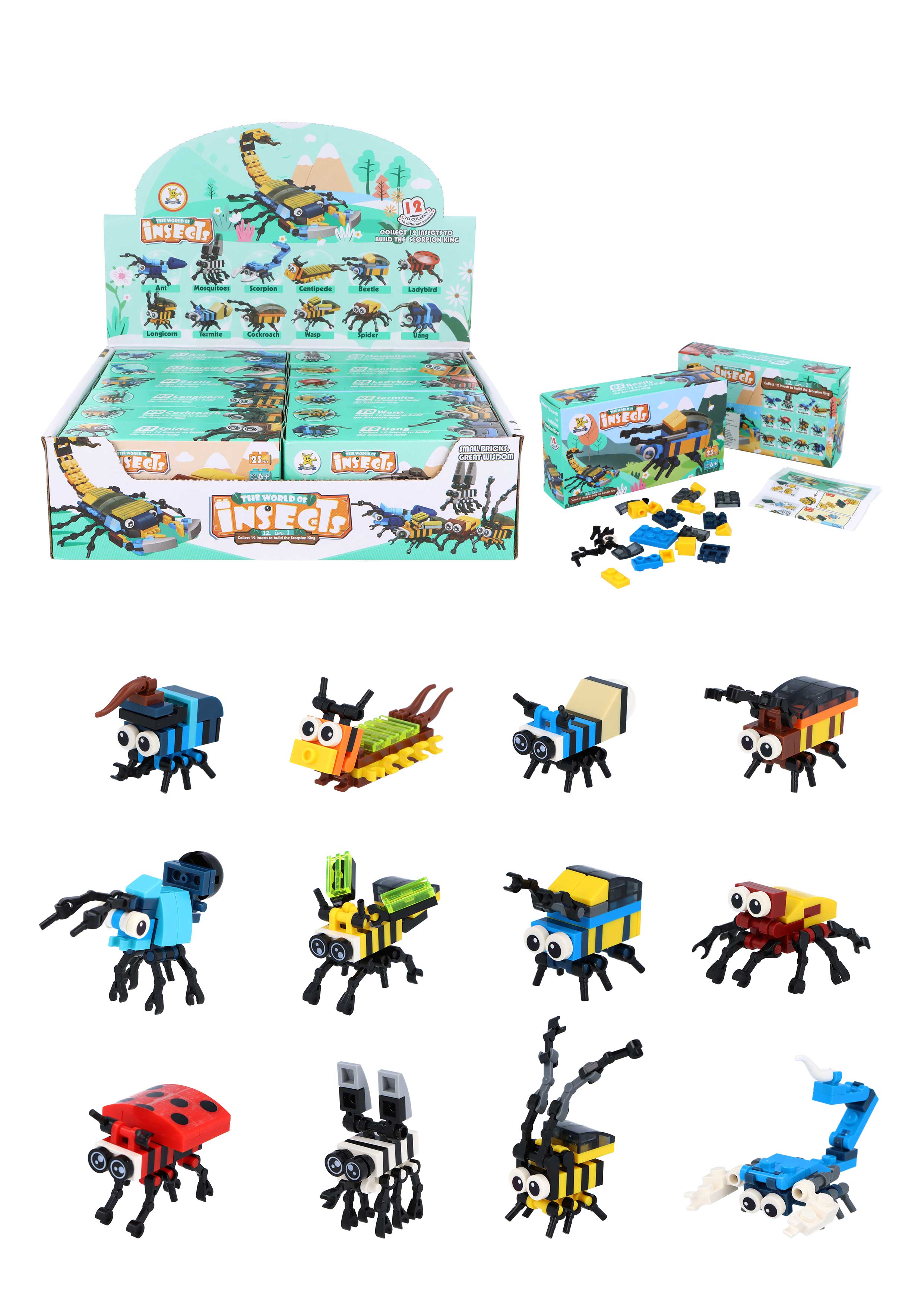 Jeu de construction d'insectes avec 32 cubes 12 espèces par présentoir