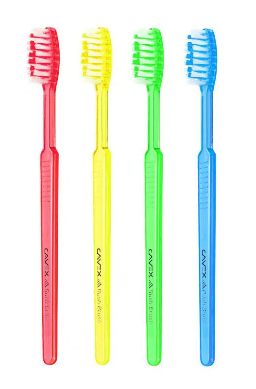 La petite tête de la brosse atteint tous les endroits de la bouche et les poils doux et arrondis sont sans danger pour les gencives. De plus, la brosse à dents est emballée de manière hygiénique dans un film plastique. La Cavex Rush Brush est donc facile à emporter partout.