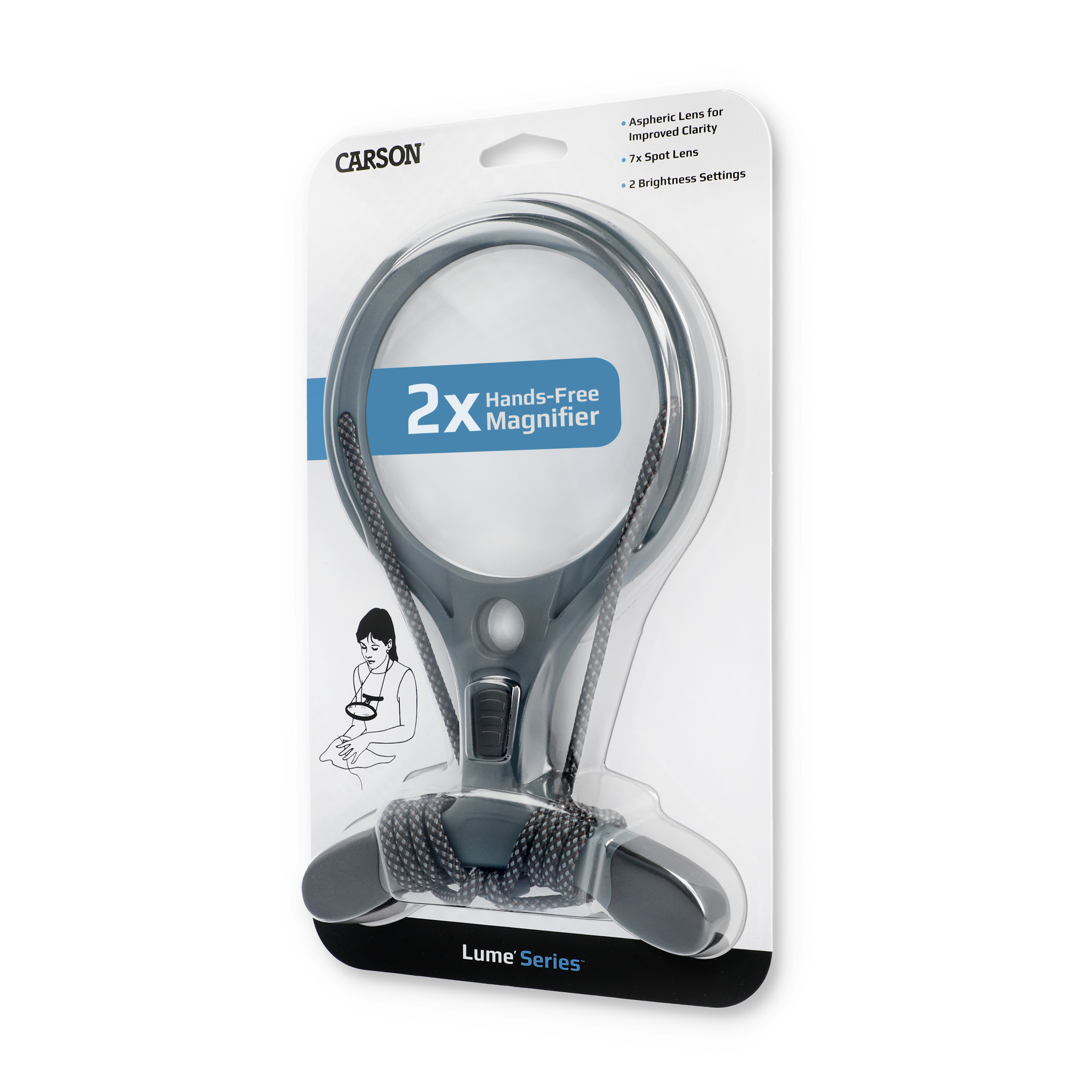 La loupe mains libres Lume Series™ 2x est parfaite pour les loisirs de précision comme la couture, la fabrication de bijoux, le modélisme et l'artisanat. Cette loupe de haute qualité avec lumière est dotée d'une sangle de cou réglable pour une utilisation mains libres, ce qui vous permet de vous plonger dans votre travail sans avoir à tenir une loupe. La lentille asphérique offre une vision claire et sans distorsion, tandis que la technologie COB LED garantit une lumière claire et homogène avec des réglages de luminosité, ce qui la rend idéale pour la lecture, la broderie et d'autres tâches minutieuses.